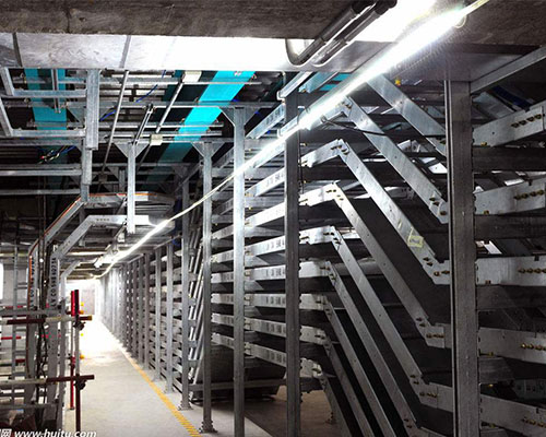 5、電纜固定:匯線橋架水平敷設(shè)時(shí),橋架之間的連接應(yīng)盡量設(shè)置在跨距1/4處。水平走向的電纜每隔2米左右固定一下,垂直走向的電纜每隔1.5米左右固定一下。